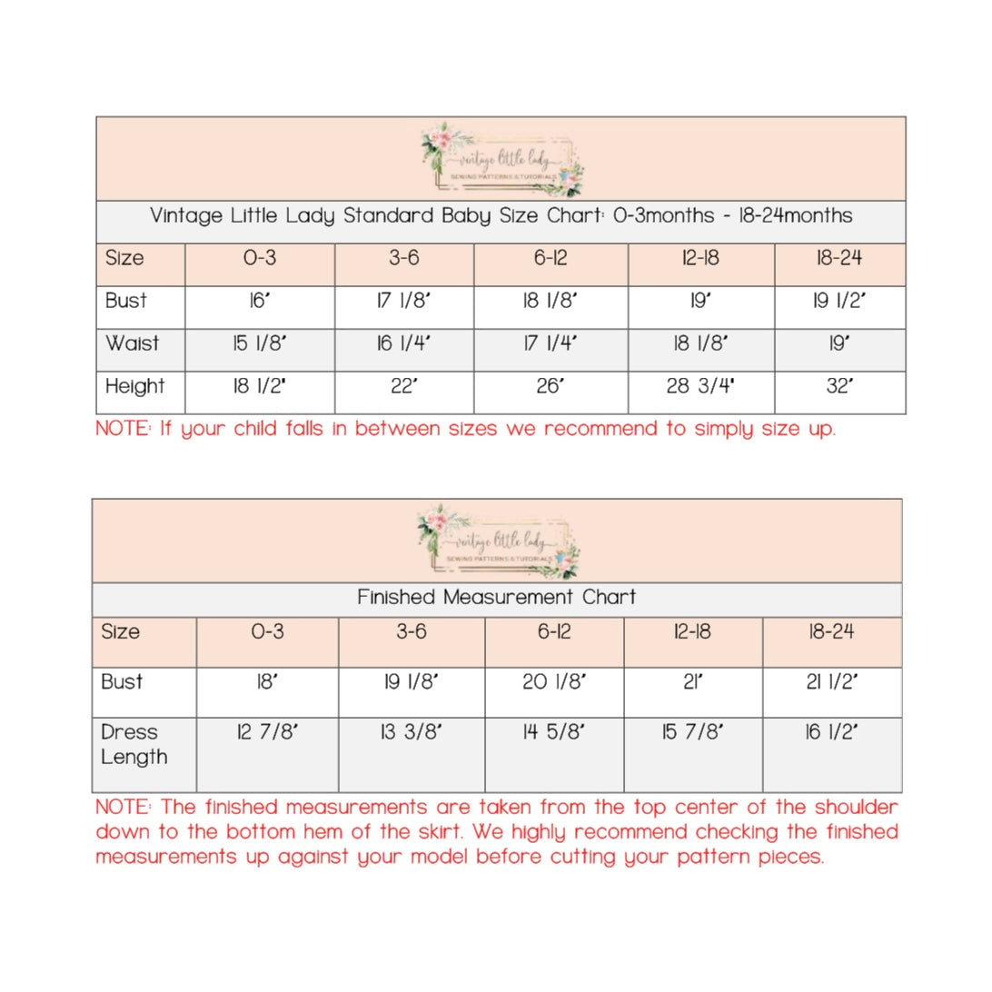 Please note baby sizes, up to 18-24 only comes as a dress length.